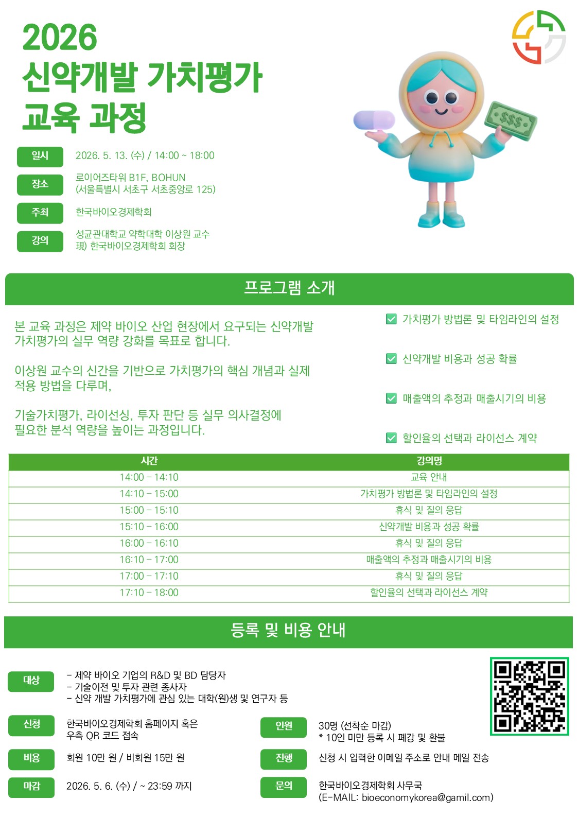 본 학회는 신약개발 가치평가의 실질적인 실무 역량 제고를 위해