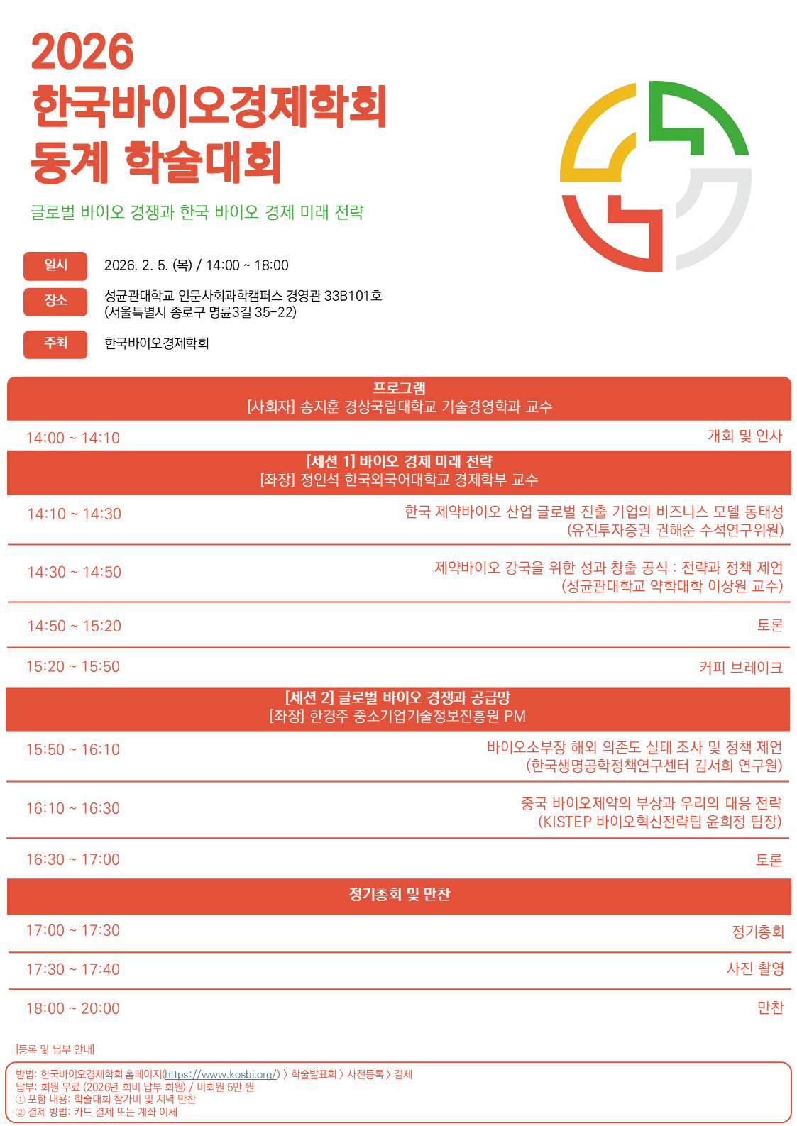 ■ 한국바이오경제학회 2026년 동계 학술대회 안내